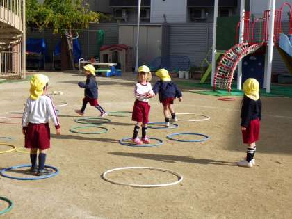 いろいろなにいろ?【道徳性・規範意識の芽生え】 公開日 2025/12/04 更新日 2025/12/04 保育の様子 4歳児が色鬼をしていました。運動会で遊んでいた遊びから、簡単なルールを加えて楽しんでいました。みんなが分かるからこそ楽しむことができます。様々な遊びを通して、自分の気持ちを調整し、心に折り合いをつけながら、みんなで遊ぶ楽しさを感じてほしいと思います。 いいね(0)
