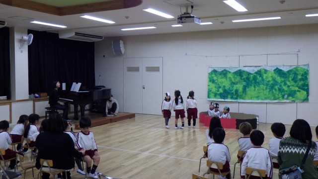 全学年で劇遊びや楽器遊びを見合いました。たくさんの人に見てもらい、拍手をもらうことで嬉しさや喜びを感じているように思いました。子どもたちの自信や満足感につながるように、今後も異年齢での活動を大切に進めていきたいと思います。