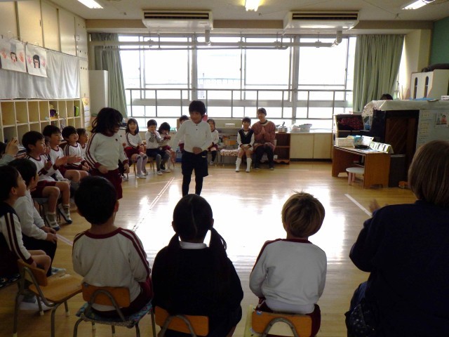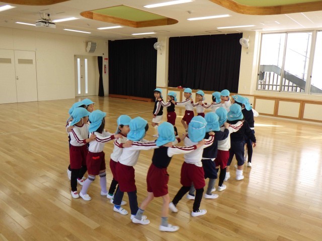 近隣園である大和田幼稚園の5歳児が遊びに来てくれました。年間を通して交流をしてきたことで、互いの顔を覚え親しみをもつ姿がありました。リレーやスキップで遊んだり、お弁当を食べたりと楽しい時間を過ごすことができました。同じ小学校に行く友達も知り、4月に期待も高まったようです。同じ地域に住む友達を知り、関わりを深めてきたことが、今日の子どもたちの表情に溢れていたと感じ、改めて近隣学校園との交流の大切さを実感しました。次年度も連携をしながら、取り組みを継続させていきたいと思います。