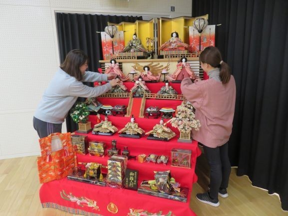 教職員でひな人形を出しました。3月3日はひなまつり、子どもたちに日本の伝統行事にふれてもらいたいなと準備を進めました。クラスで見ながら由来について知らせたり、ひな人形製作の活動へとつなげたりしていきたいと思います。