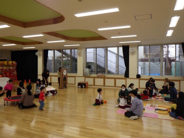 今年度最後の未就園児活動を実施しました。雨が降る中、地域の子どもたちがたくさん遊びに来てくれました。生活発表会で作った道具で遊んだり、3歳児、4歳児と一緒にダンスをしたりしました。未就園児活動は、幼稚園の生活や遊びを知り、たくさんの友達と触れ合える機会です。次年度の日程が決定しましたらホームページに掲載します。是非遊びに来てください。