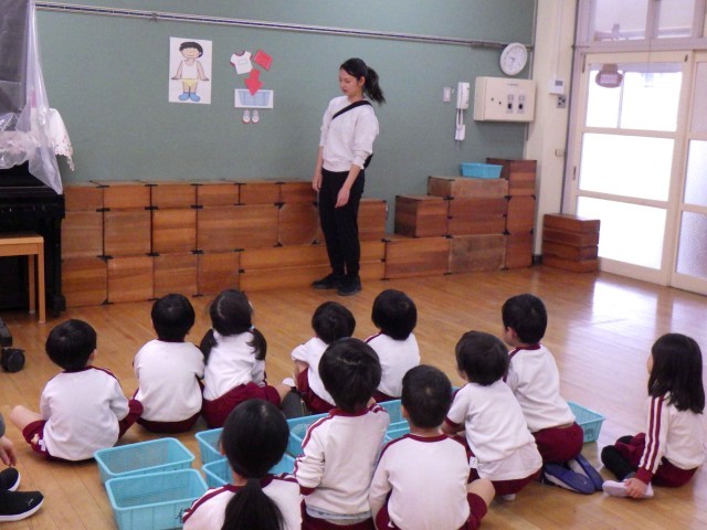4歳児が発育測定を実施しました。測定前には、カゴの中に自分の服をきれいに畳んで入れていました。背も伸びて体重も増え、とても喜んでいました。測定を通して、自分の体に興味をもつ機会になれば嬉しいです。