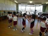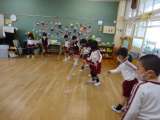 5歳児はリズム遊びを楽しみました。この遊びは年間を通して楽しんできたものです。ス...