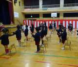 3歳児と4歳児が修了式の様子を見ました。憧れの5歳児の姿を見て「歩くのが上手だっ...