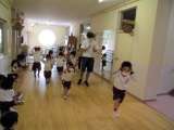 朝から全園児で集会をしました。音楽に合わせて歩いたり、踊ったりして楽しそうでした...