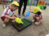 アサガオとフウセンカズラの種をまきました。毎日水やりをしていると可愛い芽がでてき...