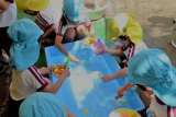 砂場に水を入れたタライを置いておくと、子どもたちがその周りに集まって来ました。 ...