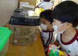 登園後、身支度を終えた子どもたちが「見て!」と急いで虫かごに駆け寄ると、アゲハチ...