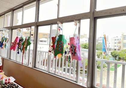子どもたち一人一人が一生懸命つくったこいのぼりが完成しました。
