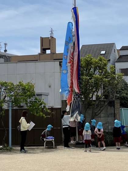 みんなで「こいのぼり」の歌を歌いながら、そら組のお当番さんがこいのぼりをあげてくれました。