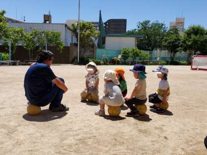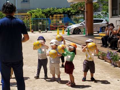 ボールを手や足でつかまえる遊びでは、楽しそうにボールを追いかける姿がとても可愛かったです。