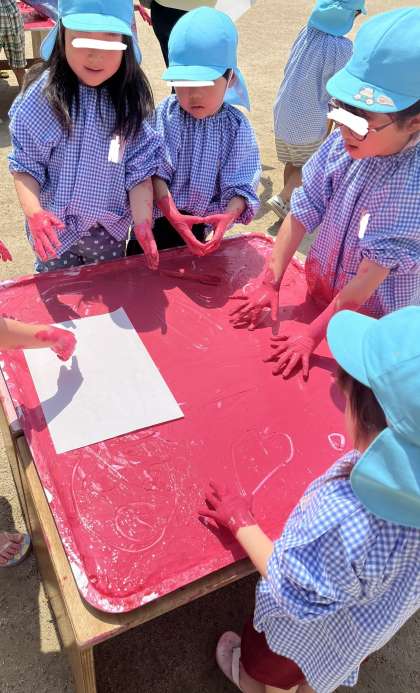 「どろっとしてる!」「気持ちいい〜!」と絵の具の感触を楽しんでいると、