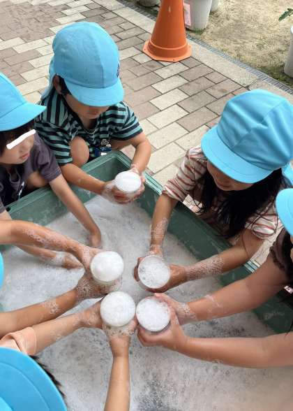 最後はコップに泡を入れて、みんなで乾杯しました♪