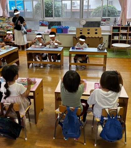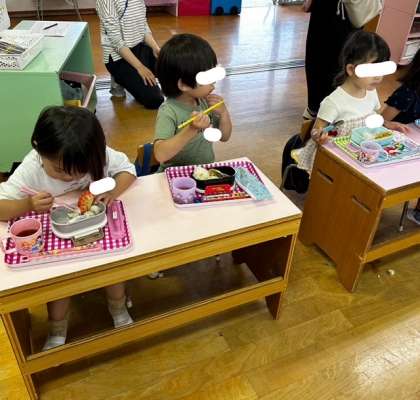 子どもたちがお弁当の用意や食べている様子をおうちの人に見に来てもらいました。