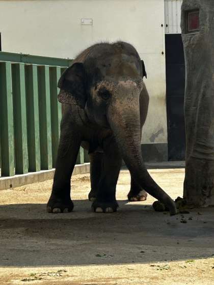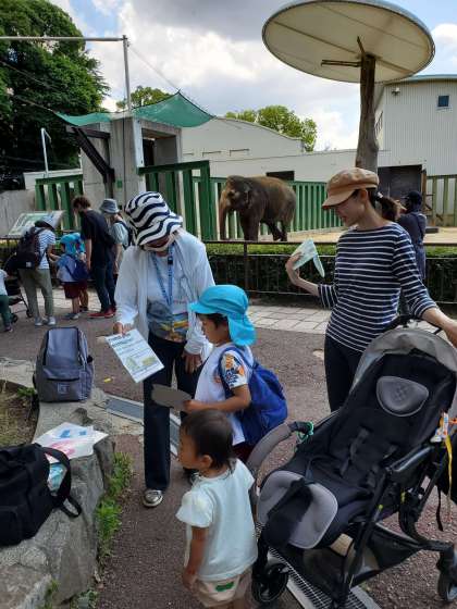 ゾウのポイントでは、ゾウの足の形や重さに関するクイズで、実際に見るゾウの大きさを感じながら一生懸命クイズに答えていました。