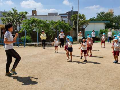 保育参加のひとつとして「親子で走り方教室」を実施しました。講師はオリンピック陸上の元日本代表選手でもある市川良子先生です。