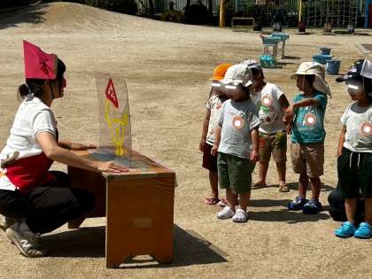 いま野里幼稚園で人気物になっている金太郎さんと一緒にお絵かきを楽しみましたよ。