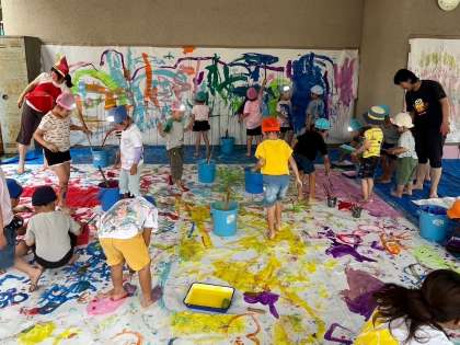 全園児とひよこランドのお友達も一緒にボディーペインティングをして遊びました。