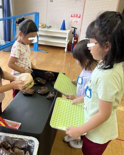 場が広くなり、「どこでお肉を焼く?」「先にポテトを選んだ方がいいかな?」と遊戯室のどこに何を置くのか、をみんなで考えました。