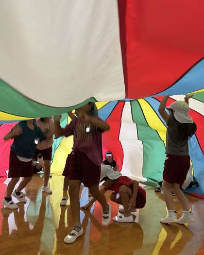 パラバルーンを見た瞬間、昨年度のそら組さんが遊んでいた姿を覚えていた子どもたちは大喜び。