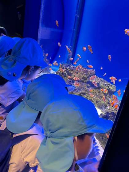 館内でのそら組さん、「これは何て言う魚なの?」「〇〇って書いてあるよ」と食い入るように興味津々で見ていました。