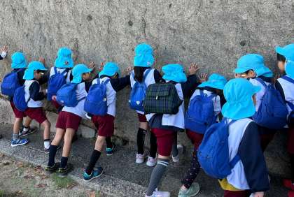 お城の下でさくら組が「おーい!」と手を振ってくれました。天守閣の上からさくら組を見つけてそら組も「おーい!」と、とっても嬉しそうでしたよ。