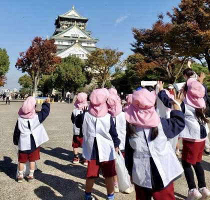 秋晴れのとてもいいお天気のなか、大阪城公園に遠足に行きました。