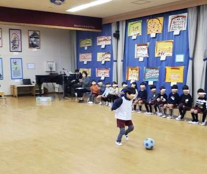 サッカーでシュートを決めて入場したり、スキップで入場したりしました。