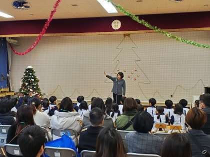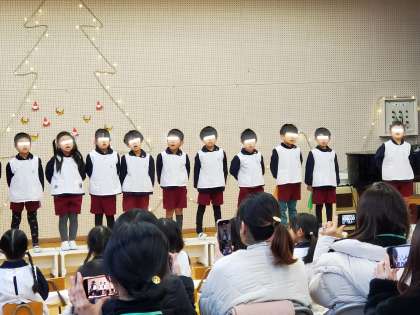 5歳児音楽会では、そら組さんが11月に大阪市立幼稚園音楽会に参加して歌った曲を含めた4曲の歌を披露し、全園児の保護者に聴いていただく機会となりました。