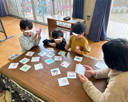 自分たちでつくったかるたに親しみをもち、さくら組さんも一緒に、かるたで遊ぶことを楽しんでいましたよ♪