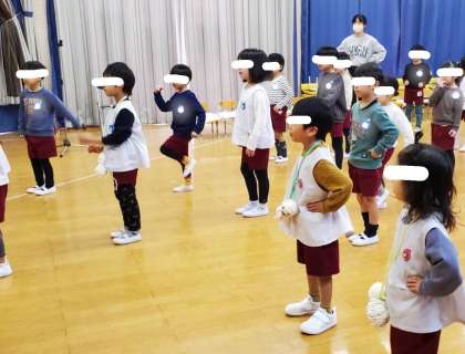 みんなで「マラソンゆきだるま」のダンスを踊ったり、今年の干支にちなんだ「ぐにゃぐにゃへび」のふれあい遊びで長いヘビになって遊んだりと、冬ならではの遊びをたくさん楽しみました!