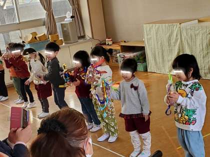 ひよこランドの活動で親しんできた歌や仲良し遊びをしたり、楽器遊びでは子どもたちがつくったマラカスを曲に合わせて鳴らしたりしました。