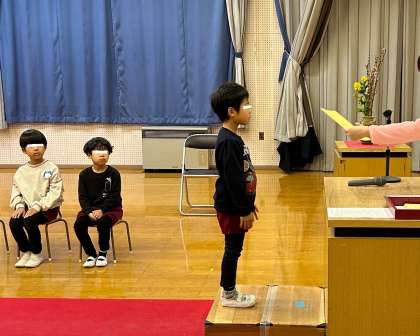 修了式では、修了証書をいただいたり、1人でお話ししたり、みんなで声を合わせたりと、緊張する場面がたくさんあります。