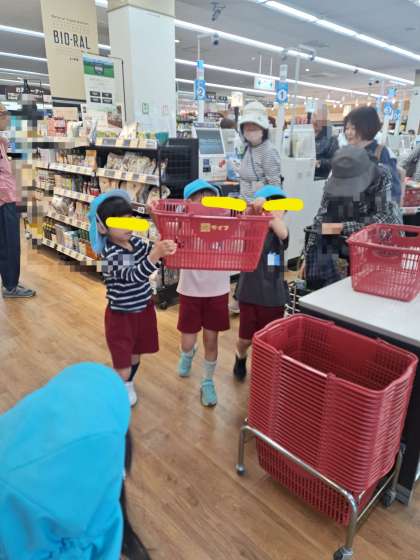 帰りにウサギさんの餌を買いにみんなでスーパーにも寄り、ニンジンがいいかな?、キャベツもいるかな?とお買い物しました。