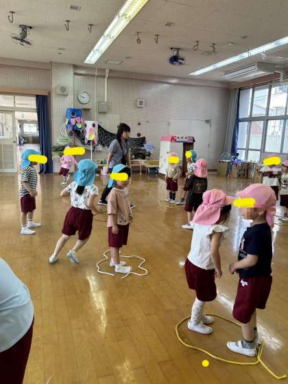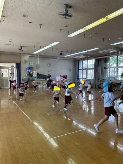 ピアノの合図がなると、先生たちがつかまえにきます!