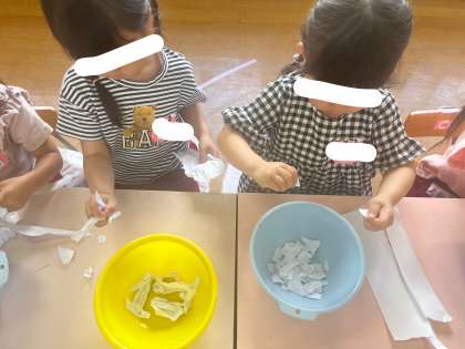 1日目はまずは細かく細かくなるように手先を使い紙をビリビリに。