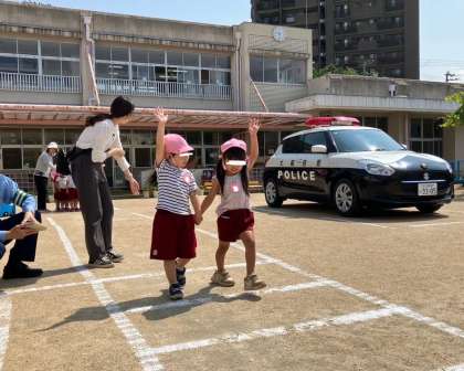 最後はミニパトカーの前で記念写真を撮り、嬉しそうな子どもたちでした。