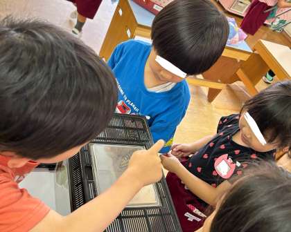 お部屋の窓の外にアゲハチョウが飛んでいるのを見つけて、「さっきのアゲハチョウが帰ってきたのかな?!」と嬉しそうにお話しする子どもたちが可愛かったです。