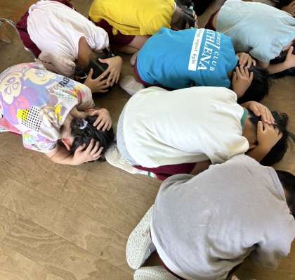物が落ちてきたり倒れてきたりするかもしれない危険性を知り、しっかりと頭を守りました。