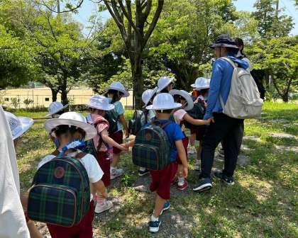 存分に水遊びを楽しんだ後は、みんなでお昼ご飯を食べたり、公園内をお散歩しながら自然物探しをしたりして過ごしました♪