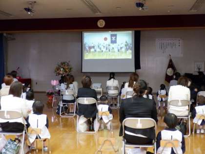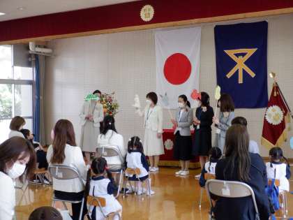 年長児は、新型コロナウイルス感染症予防のため式には参加しませんでしたが、ビデオでお祝いの言葉や歌を送りました。