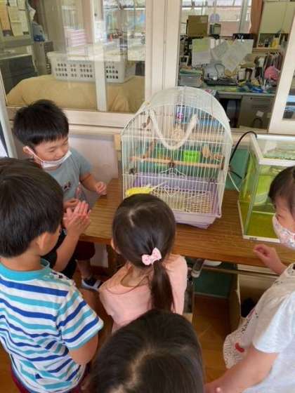 インコのレモンちゃんと金魚ちゃんはみんなの人気者。