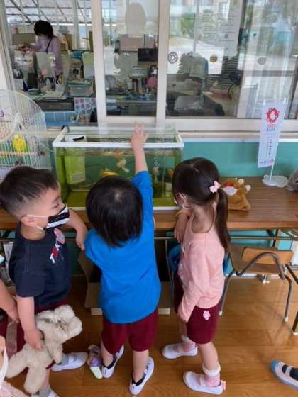 入園して間もなくで、ちょっと緊張気味の子どもたちを笑顔にしてくれるレモンちゃんと金魚ちゃんです。