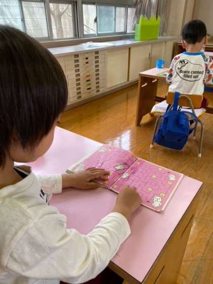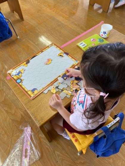 お弁当の後は、パズルをしたり絵本を見たりして、お腹やすめをしました。