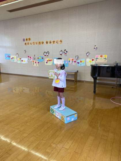 4月生まれの誕生会 公開日 2022/04/20 更新日 2022/04/20 新規カテゴリ 4歳児と5歳児、分散して行いました。さくら組(4歳児)にとっては、初めてのお誕生会でした。 4月生まれのお友達はとても緊張しましたが、頑張って自己紹介できました。 いいね(0)