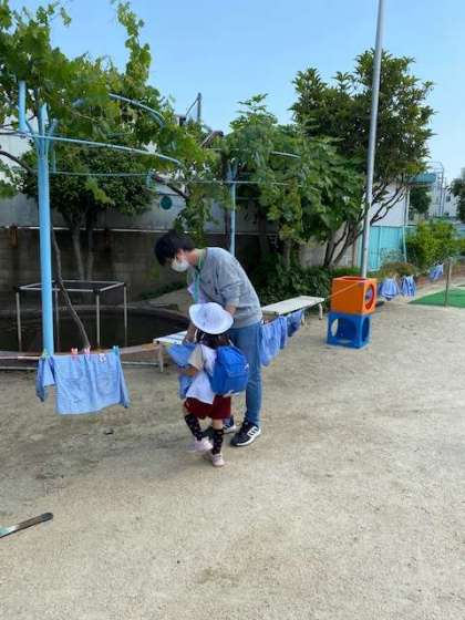 洗濯物を並べて干して、気持ちがいいね。 お家の人にも見てもらいました。