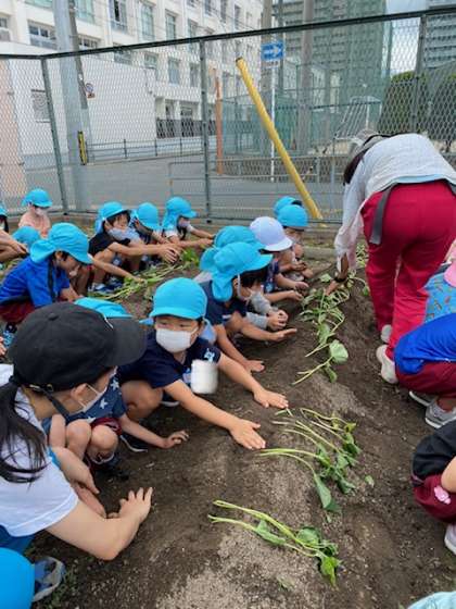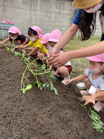 4歳児さくら組さんも、5歳児そら組さんも、上手に植えられましたよ。