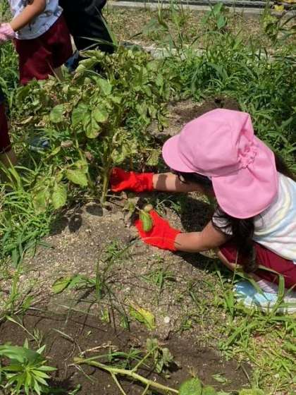 2月に植えたジャガイモが実りました。今日はジャガイモを掘りです!!
