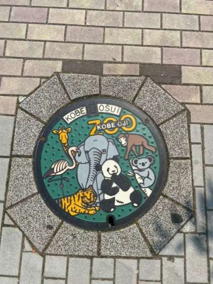 駅の北口をでたら、このマンホールの上を通って横断歩道を渡ります。