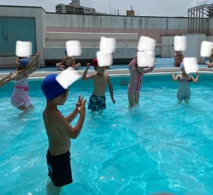 プール参観をしました。コロナウイルス感染症対策のため、1クラスを2分割して各15分の入水でした。
